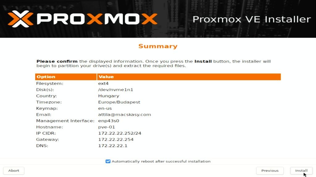 /dev/nvme1n1). - Give Proxmox a static management IP.