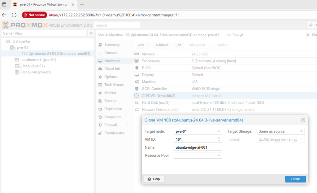 - Disk layout: Keep the AI dataset on fast NVMe; put lab VMs on separate storage to avoid contention.